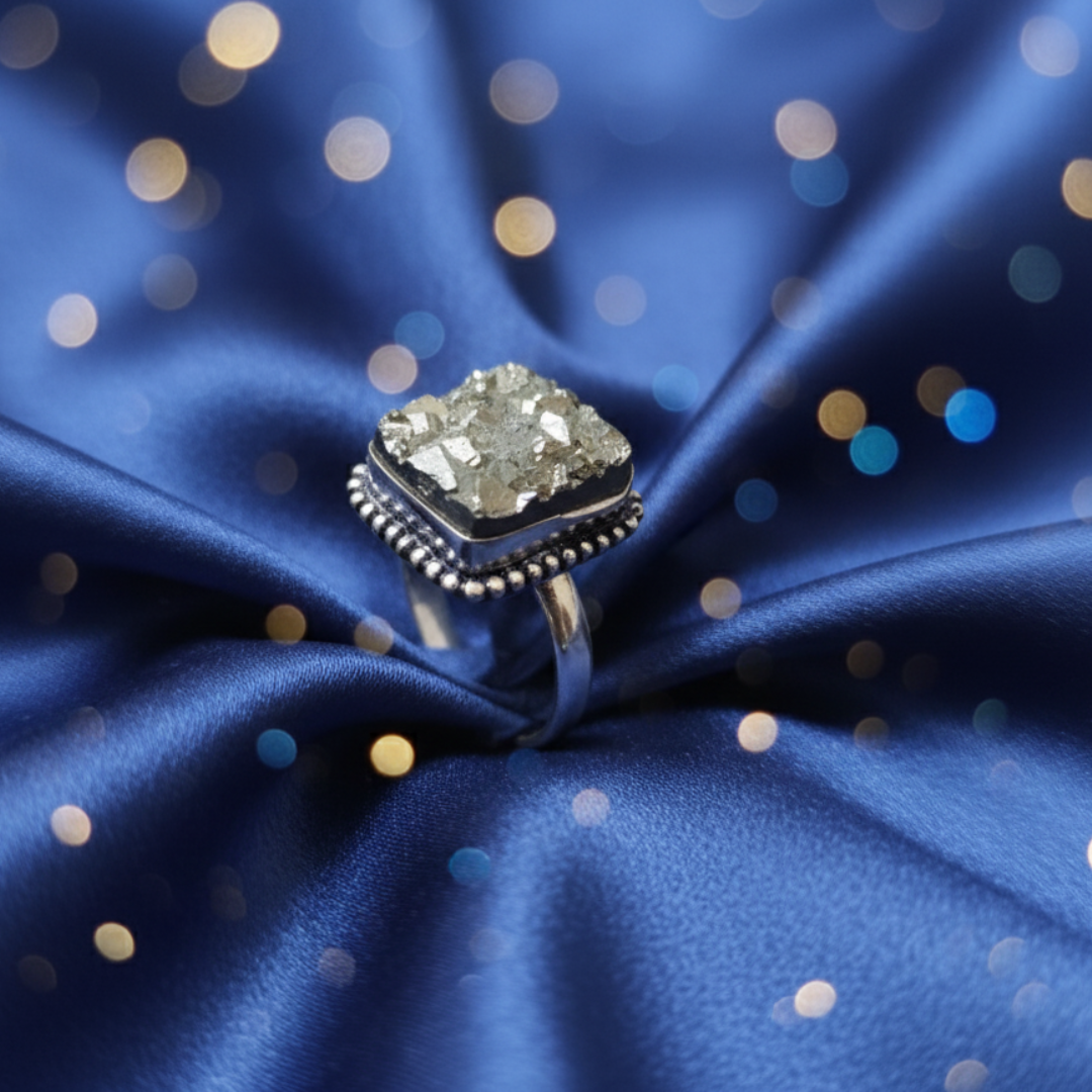 Natural Pyrite Ring (Rough) | Adjustable Free Size | Unisex | Oval, Round, Square, Rectangle