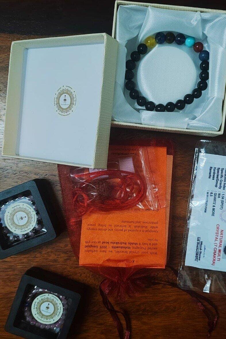 - Handcrafted using high-quality elastic threads and energised with Vedic mantras.