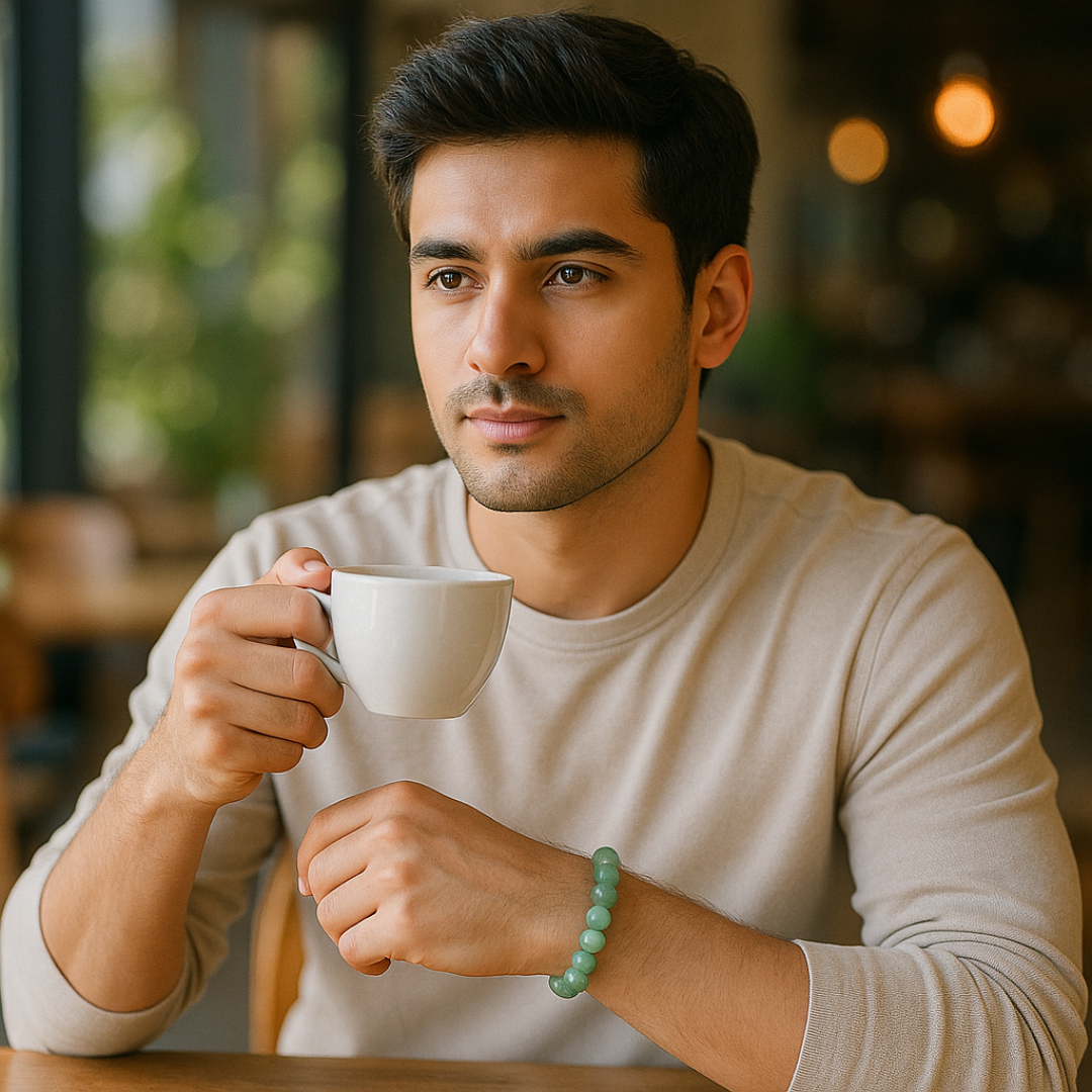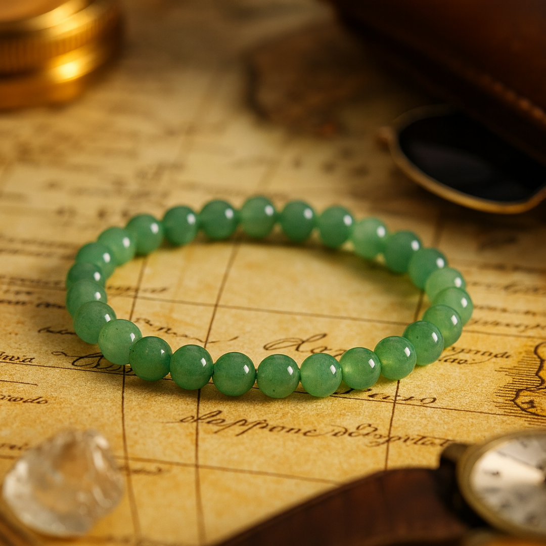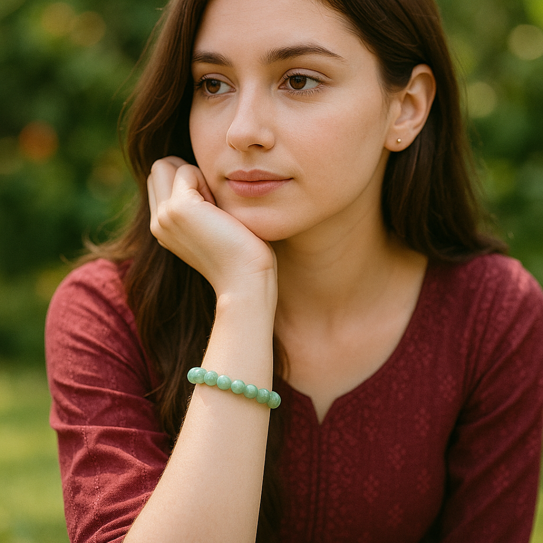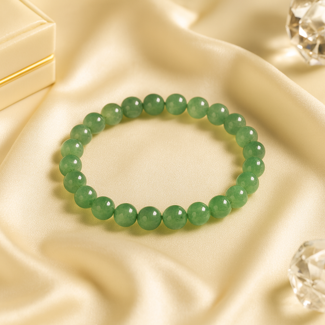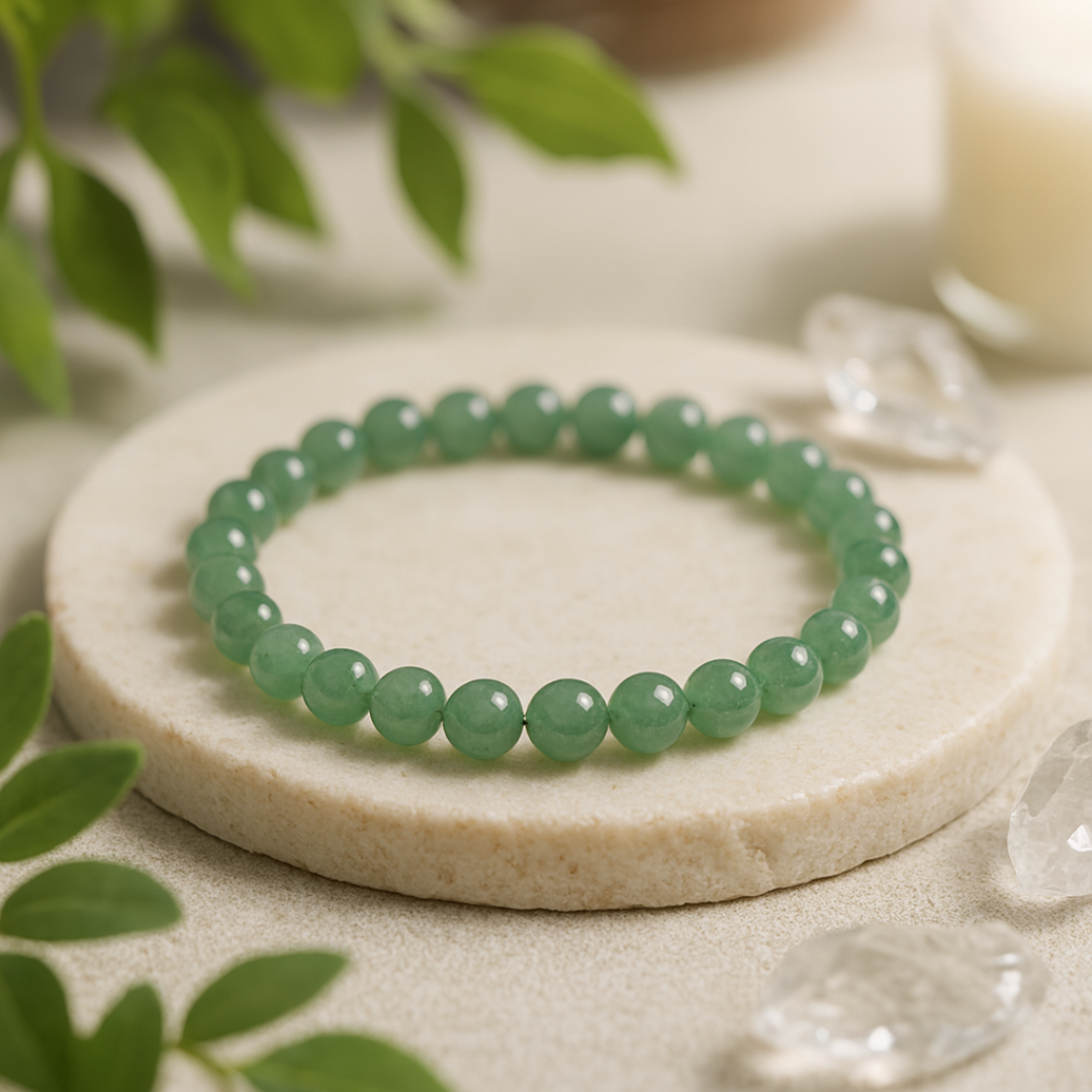 வாய்ப்பின் கல் என்று அழைக்கப்படும் பச்சை அவென்டுரைன் வெற்றி, நல்ல அதிர்ஷ்டம் மற்றும் நிலையான வளர்ச்சியுடன் தொடர்புடையது. எங்கள் AAA தர வளையல் கைவினைப்பொருளாக வடிவமைக்கப்பட்டு, வேத மந்திரங்களால் உற்சாகப்படுத்தப்பட்டு, மிகுதியாகவும் நம்பிக்கையுடனும் முடிவெடுப்பதை ஆதரிக்கிறது.