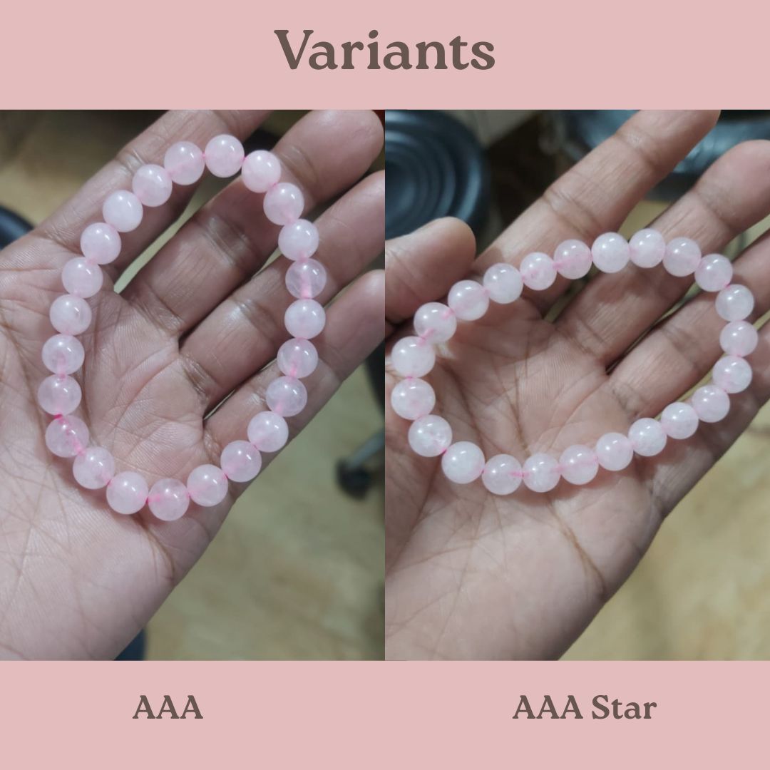 இயற்கை ரோஜா குவார்ட்ஸ் ரத்தின வளையல் | 8 மிமீ மணிகள் | குணப்படுத்தும் படிக வளையல்